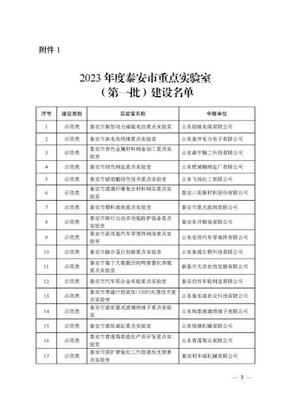 公司成功入選泰安市實(shí)驗(yàn)室建設(shè)名單